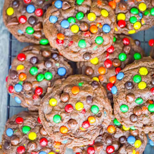 Bake a batch of these M&M chocolate cookies and share with the chocoholics and kids in your life. If you try them, leave a rating and tell me which chocolate mix-ins you used.